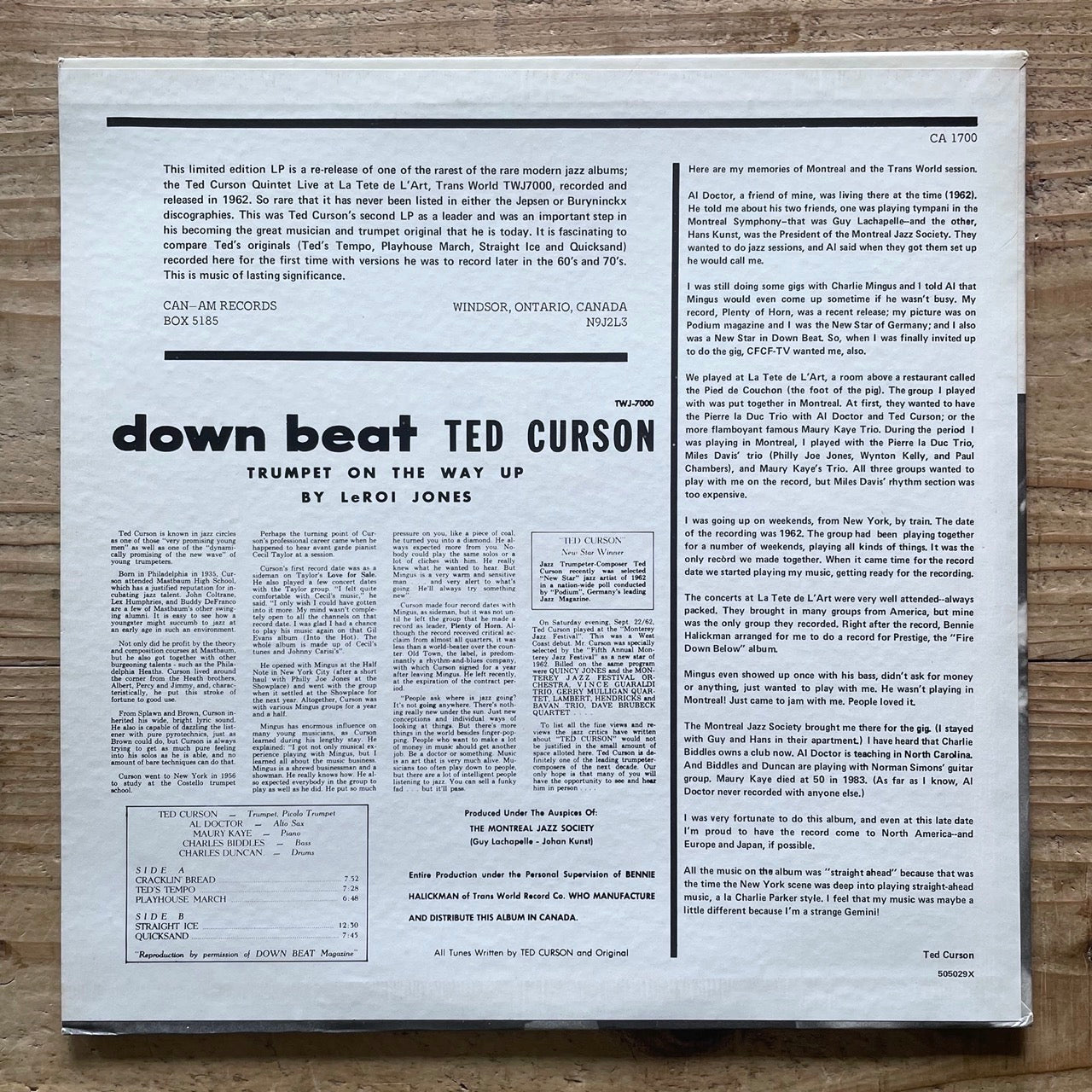 TED CURSON QUINTET / LIVE AT LA'TETE DE L'ART - Canada Can-Am LP CA 1700 NM