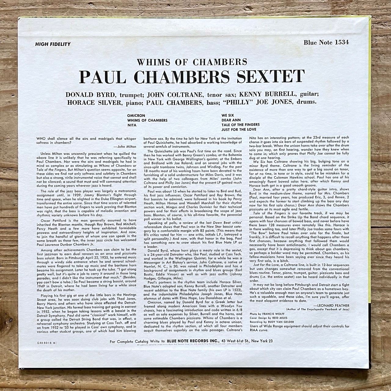 PAUL CHAMBERS SEXTET / WHIMS OF CHAMBERS - Japan Blue Note King LP GXK-8018